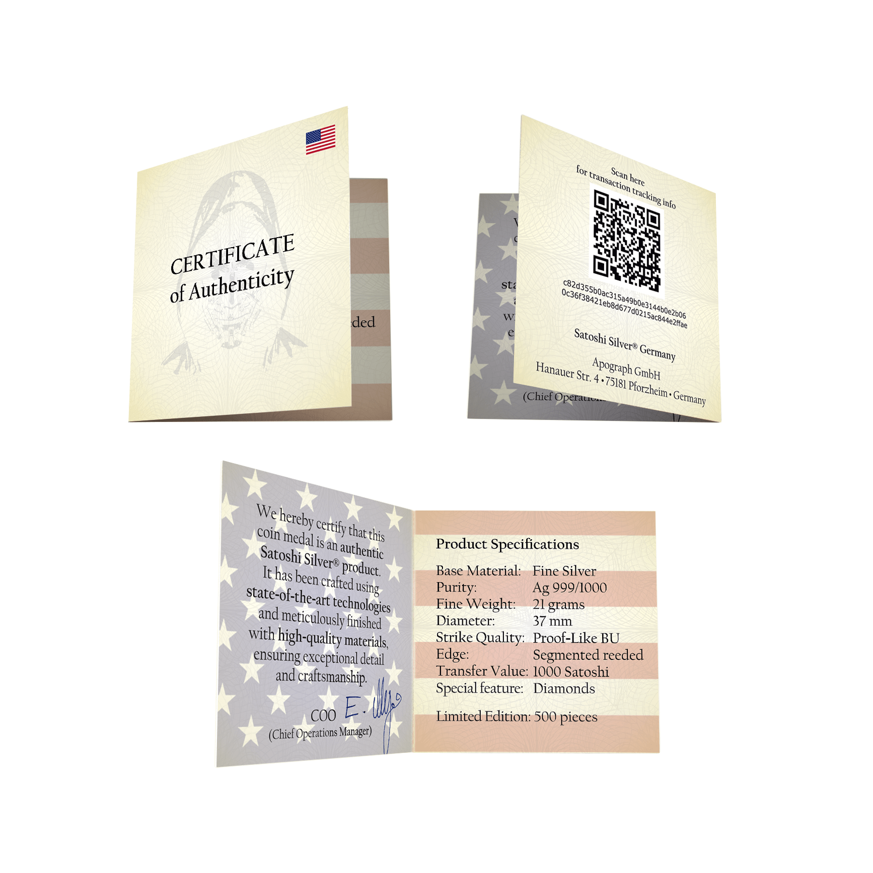 - Without engraving: If you choose the medallion without engraving, the transaction is part of a group transaction, which cannot be traced back to the individual medallion. However, the link to the Genesis Wallet remains.