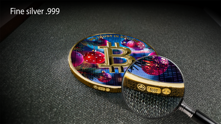 This exceptional minted silver coin-medal blends masterful craftsmanship with the innovation of cryptocurrencies.
