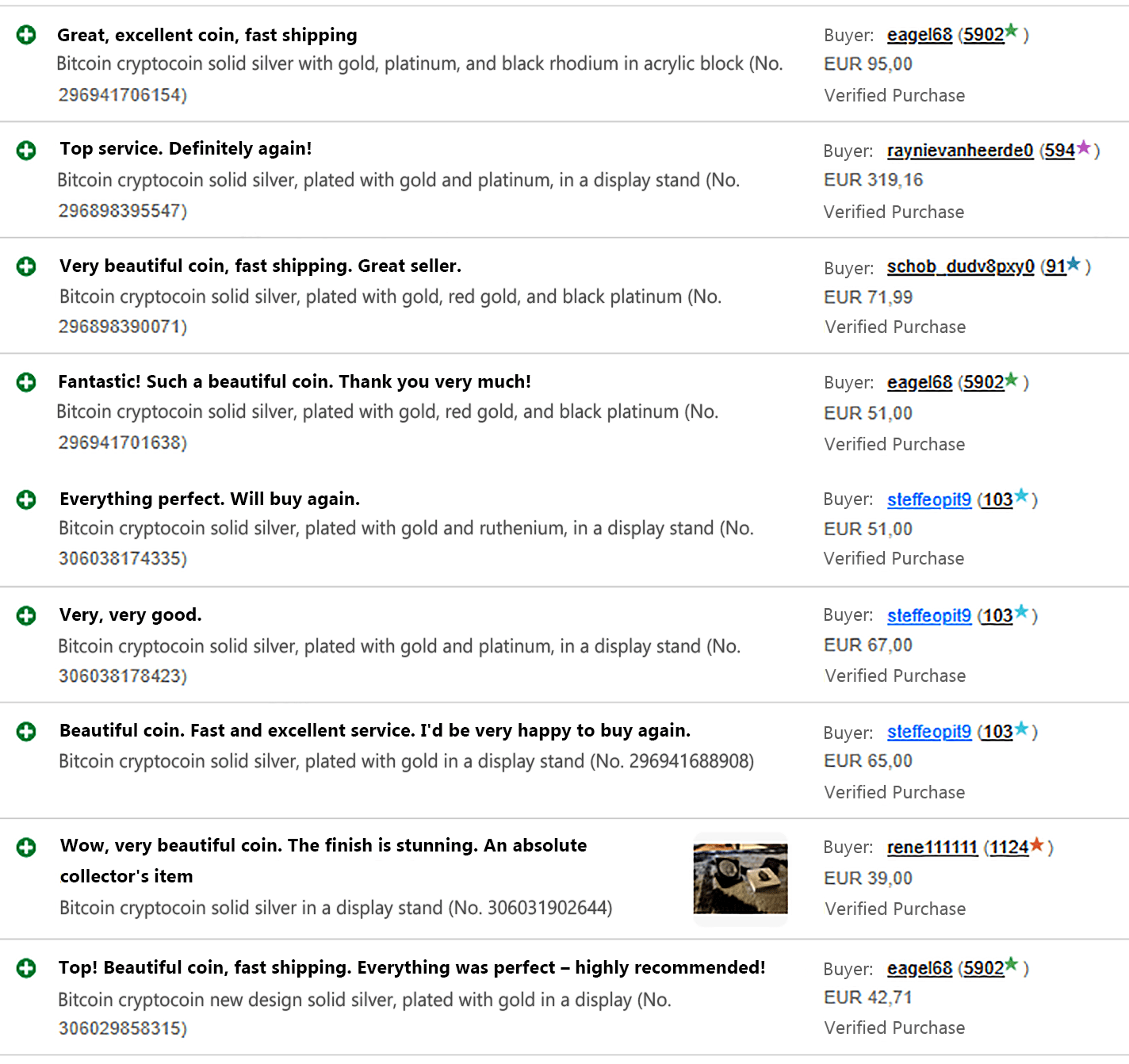 Genuine Bitcoin coin medals made of fine silver. (999/1000)